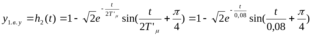 Переходная функция системы при единичном возмущающем воздействии, когда выходной величиной является выходная величина внешнего контура и на выходе системы имеется установившийся процесс с y2=1.