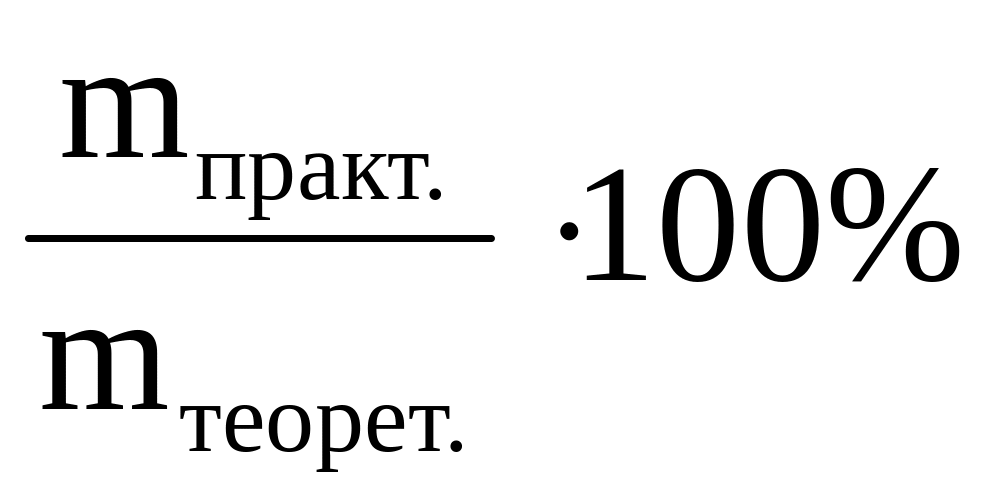 mтеорет. – теоретически возможная масса продукта, рассчитывается по уравнению реакции;