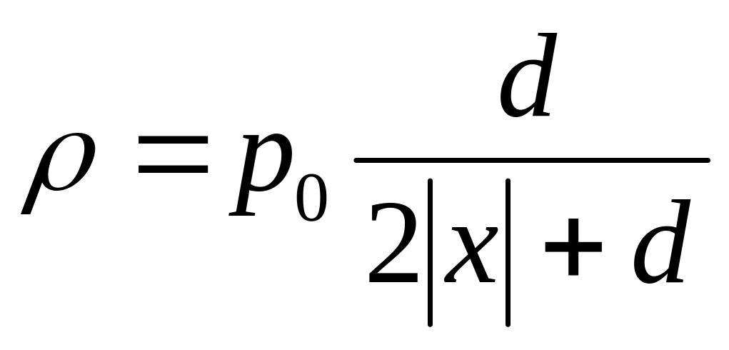 Большая плоская пластина толщиной d = 4 см имеет положительный заряд, равномерно распределенный по объему с объемной плотностью = 10 нКл/м3. Определите разность потенциалов между поверхностью и точкой, находящейся внутри пластины на расстоянии b = 1 см от поверхности. Постройте график зависимости напряженности от расстояния до центра пластины. |