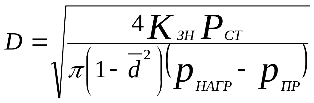 Из зависимости 3.2 может быть получена формула для расчета диаметра силового гидроцилиндра с односторонним штоком