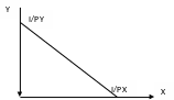 Егер тұтынушының барлық табысы Х тауарға кетсе, ол тауарды I/PX көлемінде (саны) сатып алуға мүмкіндігі бар, осыған сәйкес, егер барлық табыс Y тауарға жұмсалса, ол I/PYтауарды сатып алуға мүмкіндігі бар. Бюджеттік сызықтың енкіштік бұрышы Х тауар бірлігі бағасының Y тауар бірлігі бағасына деген қатынасымен анықталады.