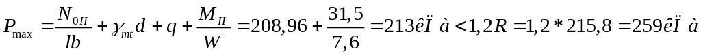 R=(1,25*1/1)*( 0,98*1*2,7*15,8+4,93*1,45*18,3+7,40*0) = 215,78кПа