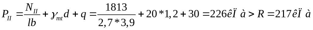 NII – сумма вертикальных нагрузок, действующих на основание, кроме веса фундамента и грунта на его уступах (обрезах), кН;