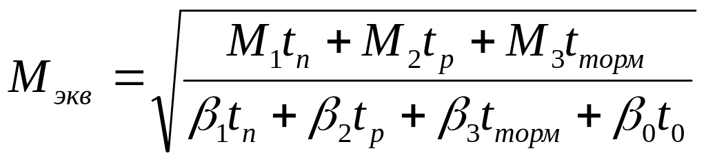 Для режимов S4 и S5 обычно применяют двигатели серийно выпускаемые для режима S3 со стандартными ПВ%=15;25;40;60% либо двигатели серийно выпускаемые для режима S1. В этом случае при выборе мощности двигателя подразумевается ПВ=100%. Чаще всего в качестве математического аппарата для проверки правильности выбора по нагреву используют метод эквивалентных моментов. При этом в формуле эквивалентного момента введены поправочные коэффициенты, которые имеют обозначение (), и которые учитывают ухудшение теплоотдачи двигателя во время разгона, торможения, паузы по сравнению с теплоотдачей при работе с =const.