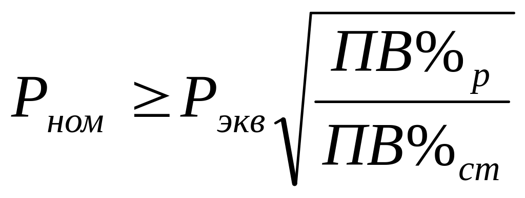 а) определяют реальную ПВ%: . ПВ%=tр+tп+tт/(tр+tо+tп+tт)100%. По каталогу выбирают ближайшую стандартную ПВ%;