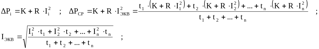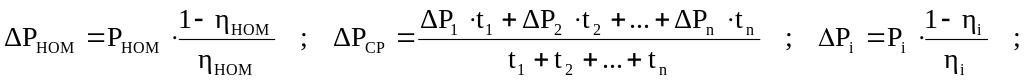 Р1,Р2,…,Рn - потери мощности на каждом участке нагрузочной диаграммы;
