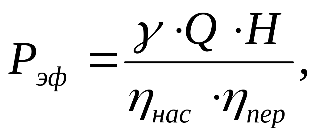По паспортным данным насоса рассчитываем мощность