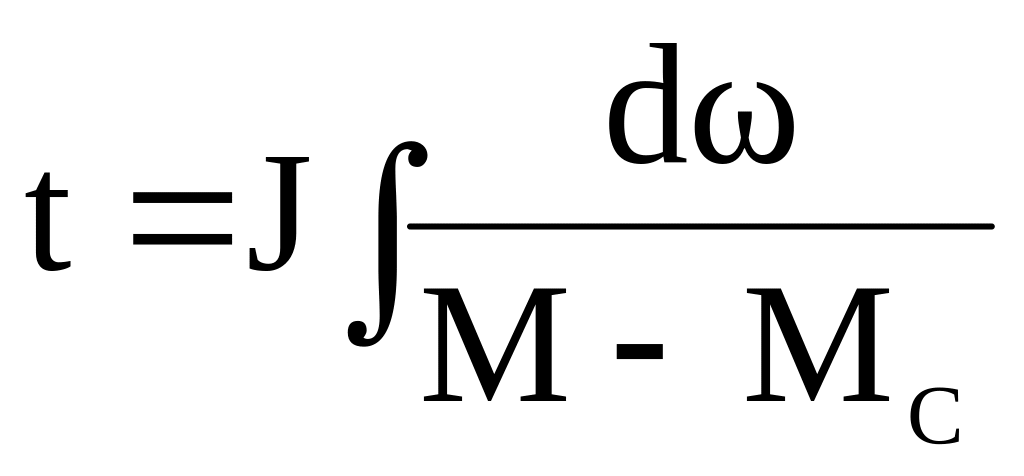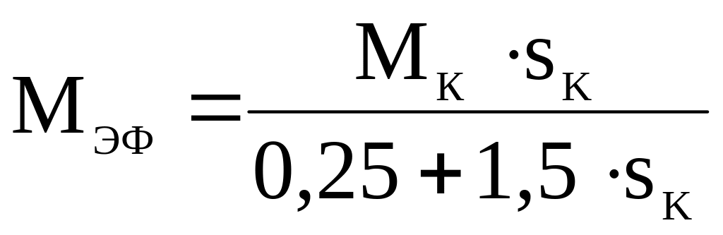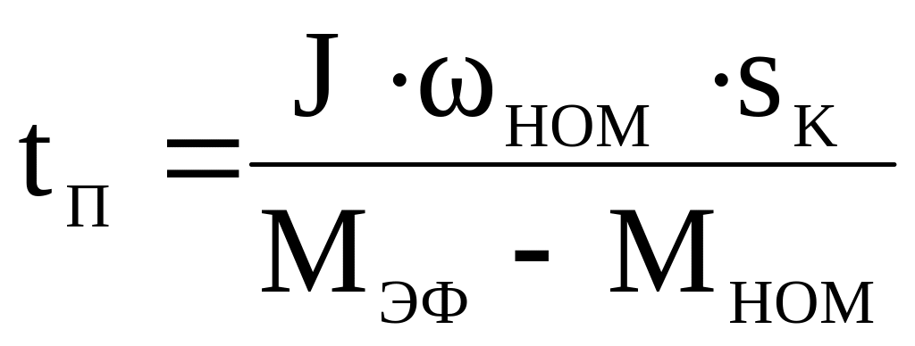 Так, если вращающий момент двигателя изменяется нелинейно, МС – const. Пример: АД – поршневой насос. При решении такой задачи вводится эффективный момент двигателя, МЭФ, который определяется по паспортным данным асинхронных двигателей с помощью эмпирических формул различной степенью точности. Время пуска определяется как: