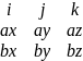 a x b = (ax*i + ay*j + az*k) x (bx*i + by*j + bz*k).