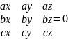 a = (ax , ay , az) ; b = (bx , by , bz) ; c = (cx , cy , cz).