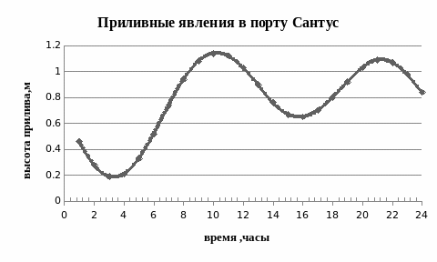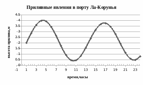 Колебания уровня моря можно представить в виде кривой, построенной в системе прямоугольных координат, по осям которой откладываются высоты приливов в метрах и соответствующие им время суток. Имея такую, далее не трудно решить практически любую штурманскую задачу по предвычислению приливов.