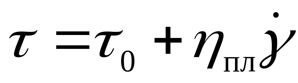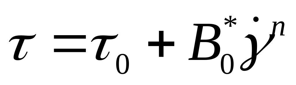 Линейная зависимость 5 характерна для бингамовских тел и соответствует идеальному пластичному течению, у которых после достижения предельного напряжения сдвига τ0 наблюдается пропорциональность между скоростью и напряжением сдвига. Такие материалы описываются уравнением Бингама: