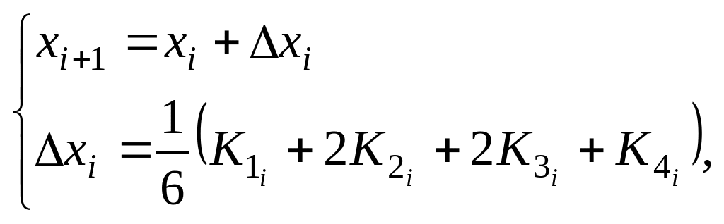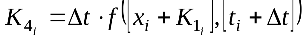Данный метод заключается в том, что рассчитывается последовательность точек функции x(t), причем приращения функции рассчитываются путем усреднения промежуточных коэффициентов К1, К2, К3 и К4:
