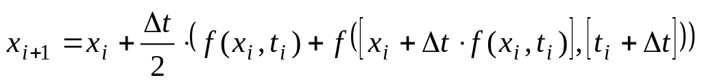 Для уравнения запишем формулу расчета функции x(t) согласно методу Эйлера-Коши