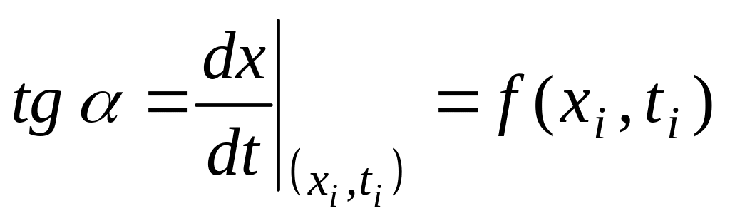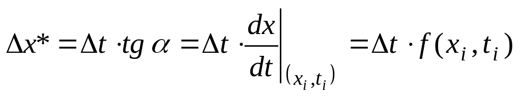 Если предположить, что функция x(t) проходит через промежуточную точку (xi*,ti+1), то в ней также можно построить касательную II к функции x(t). Касательная II пройдет под углом .