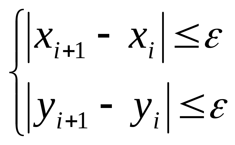 Для реализации последовательного приближения грубого приближения к решению (точному) х и у необходимо записать в алгоритм поиска наиболее точного решения в следующем виде:
