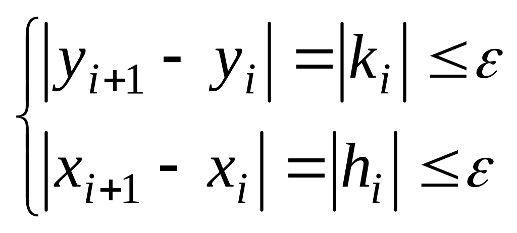 Начальные приближения должны выбираться в области R. Условием достижения заданной степени точности является выполнение следующих условий:
