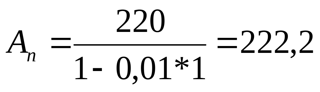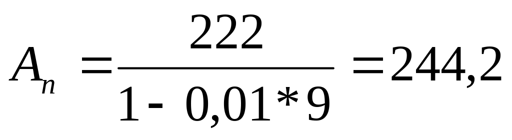 где Аn — количество вещества (ингредиента), перерабатываемого на операции «n»;