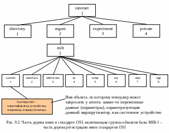 На рисунке 9.3 приведен фрагмент базы данных системы управления модели OSI в виде дерева включений, совмещенного с деревом имен.