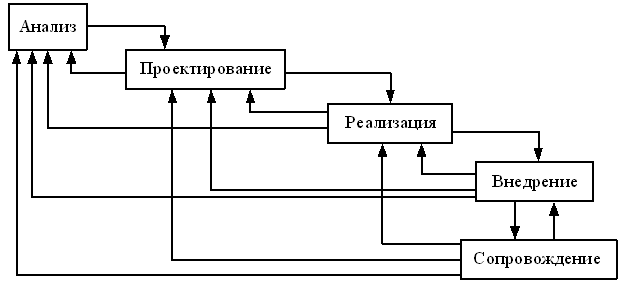 Рисунок 1 – модель последовательностного жизненного цикла. Цикл Боэма.