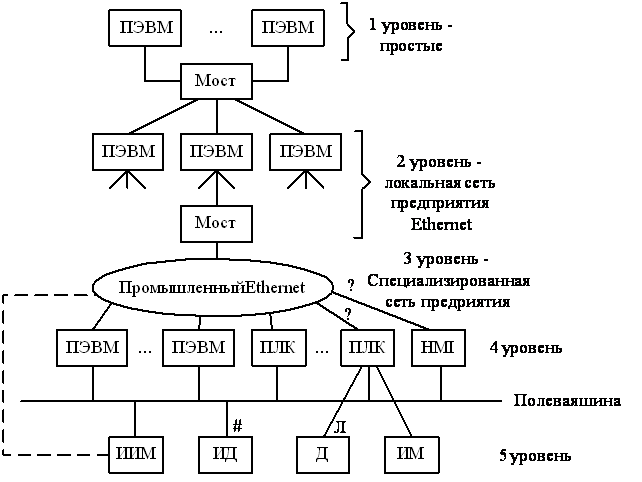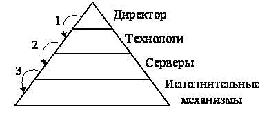 Иерархия уровней управления предполагает наличие 4х уровней, которые можно определить формально названиями исполняющих функций.