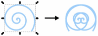 Используя инструмент "Выделение и трансформация" щелкните им по объекту и он станет выделенным. Выделенный объект inkscape будет обведен черной или пунктирной рамкой. При наведении на объект рядом с курсором мыши появится изображение руки. В этом случае удерживая нажатой левую кнопку мыши можно изменять расположение обекта перетаскивая его по холсту. Черные прямые стрелочки по краям рамки позволяют изменять размеры объекта. Если еще раз щелкнуть указателем мыши по объекту, черные прямые стрелочки изменятся на черные загнутые стрелочки. В этом случае вы можете вращать объект или изменять его наклон.