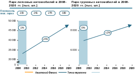 Рисунок 16 – Прогноз парка автомобилей в 2008-2020 гг.
