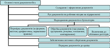 Кожне підприємство, враховуючи специфіку своєї господарської діяльності та структури управління, визначає напрями й обсяги документів. Організує документооборот на підприємстві головний бухгалтер чи бухгалтер, який розробляє правила і технологію обробки облікової інформації.
