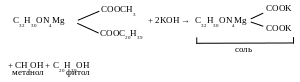 Доказать, что свет поглощается порфириновым ядром молекулы хлорофилла, можно с помощью реакции хлорофилла со щелочью, в результате которой образуются два спирта (метанол и фитол) и соль хлорофилла: