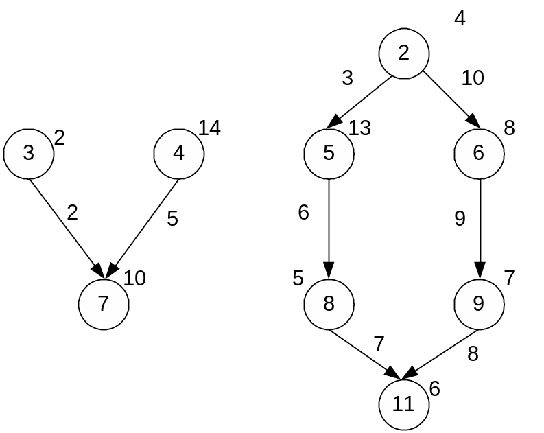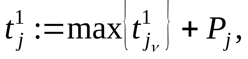 Для графа который имеет ту же конфигурацию, что и граф G, но в котором изменены веса вершин с учетом весов дуг, вычислим ранние сроки окончания операторов.