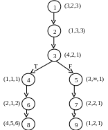 В графе G нет циклов, поэтому все пути имеют конечную длину. Кроме того, будем считать, что значения логических переменных не связаны друг с другом, поэтому в процессе реализации алгоритма возможен любой из допустимых путей.