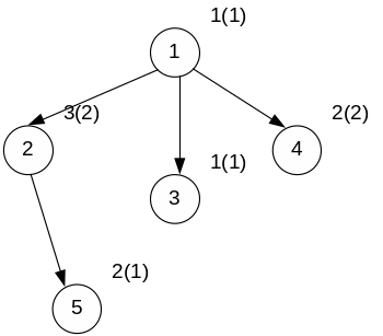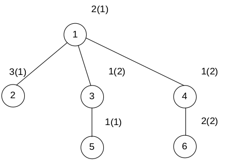 . Веса остальных вершин (исключая вершину ) вычисляются как