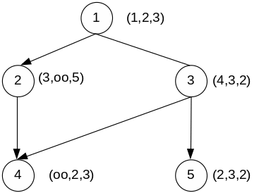 Нумерация в кружке – имя процедуры (номер вершины). Скобки – вектора весов (тут 3х мерные вектора) Номер позиции – тип процессора. ∞ - на этом процессоре данная процедура не выполняется.