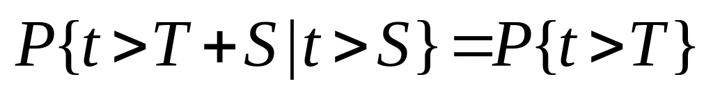 Експонентний розподіл є абсолютно випадковим і володіє так званою властивістю відсутності післядії або відсутності пам'яті, яка математично формулюється так. Нехай час t настання якої-небудь події розподілено за експонентним законом з функцією щільності f(t). Якщо S – час, що пройшов з моменту настання попередньої події, то властивість відсутності післядії виражається співвідношенням