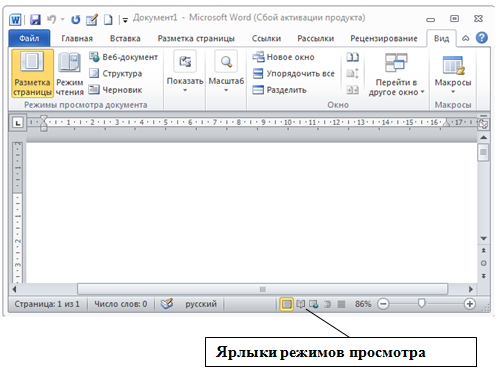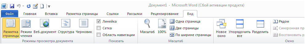 Также переключаться между режимами просмотра документа можно на вкладке Вид. Группа Режимы просмотра документа содержит кнопки для выбора основных режимов