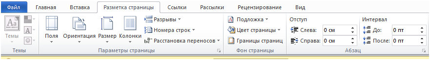 Для определения формата страницы используется вкладка Разметка страницы.