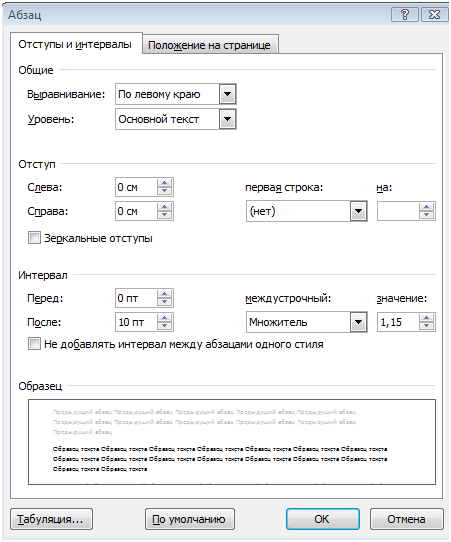 Форматирование абзаца