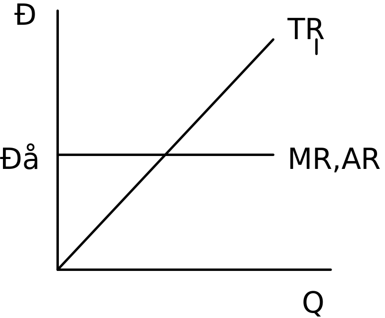 представлен на графике линейной функцией, имеющей положительный наклон и берущей начало в точке начала координат, поскольку любая проданная единица выпуска увеличивает объем TR на величину, равную рыночной цене Ре.