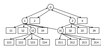 Ориентированный граф состояний ремонтируемой системы с постоянно включенным резервом изображен на рисунке 6. Он имеет 21 узел. Направление стрелок сверху вниз соответствует отказовым переходам, а снизу вверх – восстановлению элементов. На графе кружками отмечены исправные состояния, а квадратами – отказовые.