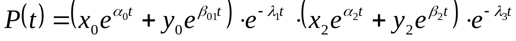 Поскольку первая и четвёртая подсистемы являются нерезервированными, а вторая и третья представляют собой дублированные подсистемы, то в соответствии с формулой (1.7) для постоянно включенного резерва получим следующие формулы для вероятности безотказной работы подсистем: