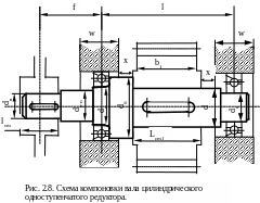 Для цилиндрического одноступенчатого редуктора (рисунок 2.8) расстояния между подшипниками определяются по формуле