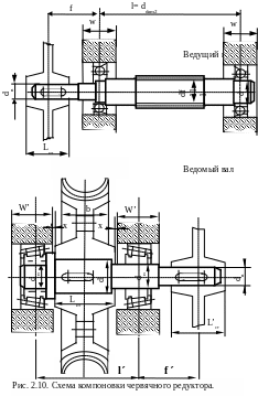 Для червячного редуктора расстояние между опорами вала - червяка равно