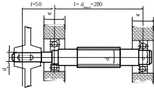 5. Расстояние от середины выходного конца до ближайшей опоры (см. рекомендации таблицы 2.4) f = 70 мм.