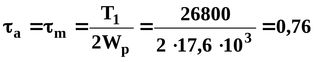 18. Касательные напряжения отнулевого цикла для сечения под шестерней (формула (2.21))