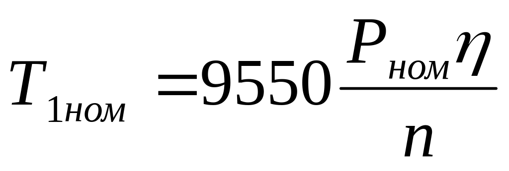 4.3.2 При расчёте зубчатых передач универсальных металлорежущих станков средних размеров с ручным управлением номинальный крутящий момент Т1ном (Нм) рекомендуется определять по номинальной мощности Рном (кВт) приводного электродвигателя и расчётной частоте вращения п (мин-1) – частоте, начиная с которой и выше можно работать с использованием полной мощности (с учётом КПД механизма), т.е.
