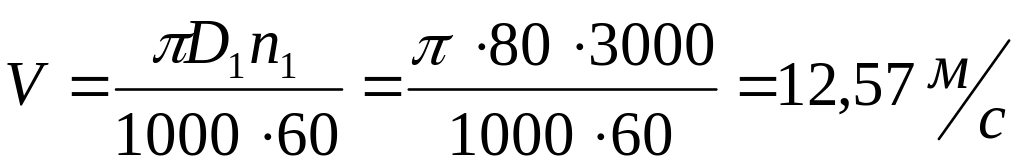 Выбираем сечение О ремня с площадью поперечного сечения F=47 м2. Выбираем значение диаметра D1 ведущего шкива. В таблице 5.6 [9, с 69] указано минимальное значение Dmin=63 мм. Однако для обеспечения большей долговечности ремня рекомендуется не ориентироваться на Dmin, а брать шкив на 1 – 2 номера больше. Принимаем D1=80мм.
