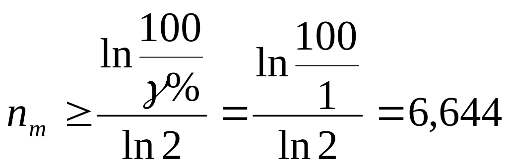 Число розрядів n цифрового кода АЦП з урахуванням шумів визначаємо за формулами