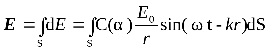 Здесь Е0 – амплитудное значение светового вектора, С(α)- коэффициент, зависящий от угла α (С(0) = 1, С(π/2)= 0). Тогда результирующий световой вектор от всей волновой поверхности S в точке В равен