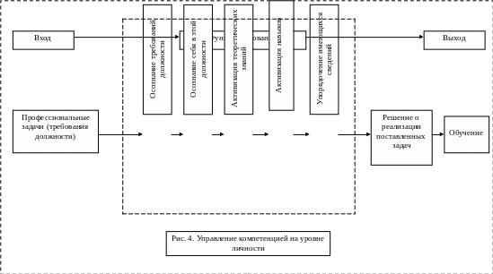 Управление компетенцией на уровне личности состоит в оценке индивидом своих возможностей в соответствии с требованиями должности. В зависимости от оценки работник сам решает, нужна ли ему переквалификация. Затем его решение оценивает руководитель организации (рис.4).