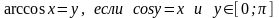 арккосинусом числа х [- 1;1] называется такое число у [0;π], косинус которого равен х.